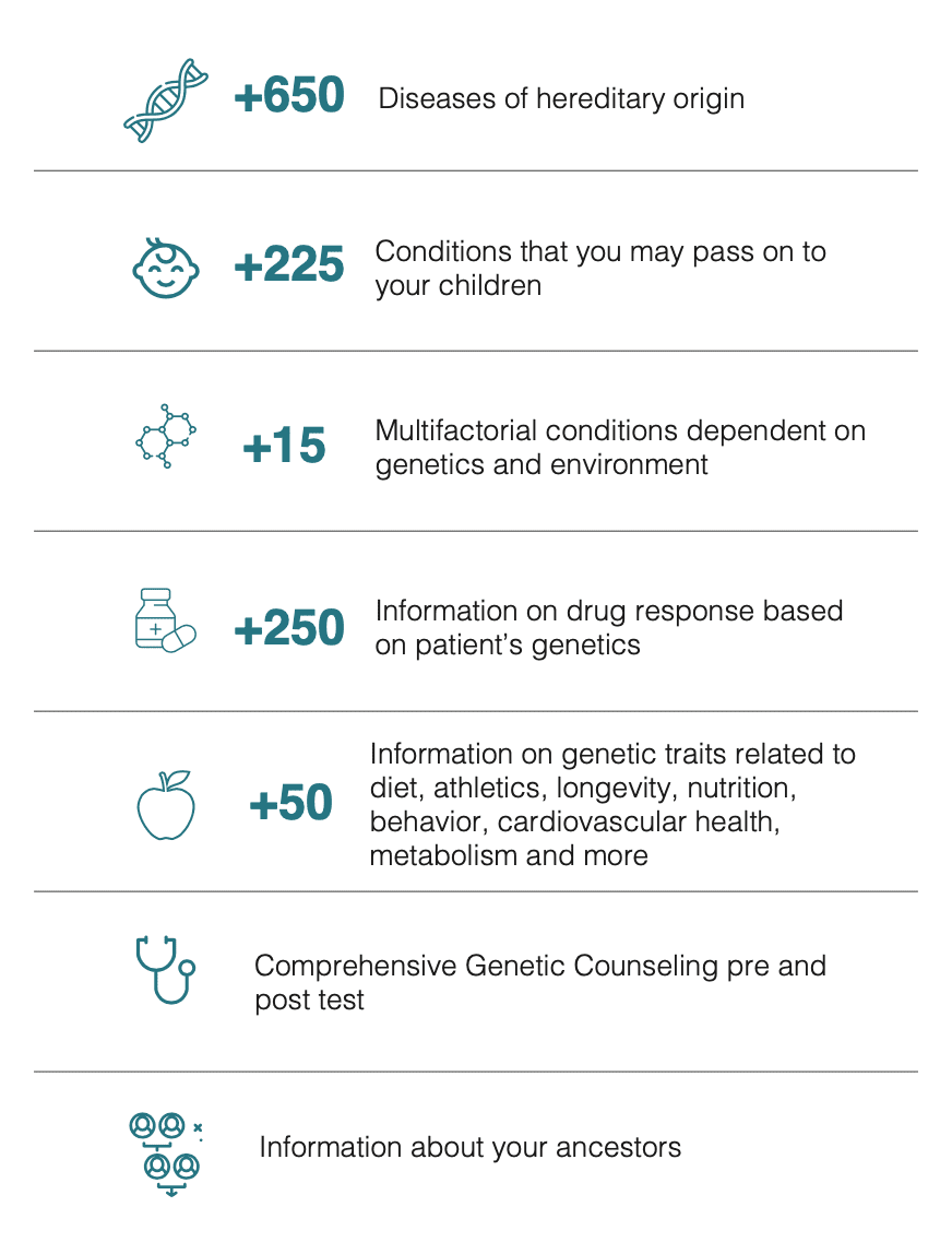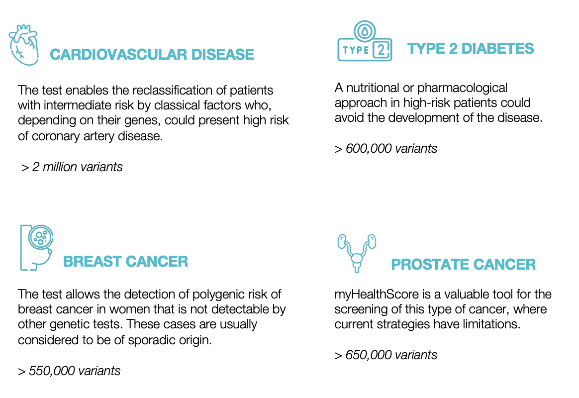 Veritas UK Improving healthcare through geneticsVeritas is a LetsGetChecked company, a leading healthcare solutions company; guided by science, empowered by technology and passionate about caring for people.Veritas is The Genome Company; the first company to offer clinical-grade Whole Genome Sequencing (WGS) and interpretation for healthy individuals. Empowering people to live longer and happier lives Global leaders in WGS and WES Transforming healthcare through advanced genetic and clinical interpretation. Pioneers in Genomics Operating in more than 35 countries around the world, democratizing access to genomic data and its benefits. Cutting-edge laboratories With the most advanced sequencing technology together with an expert team specializing in variant analysis.Preventive genetics services Whole Genome Sequencing based comprehensive genetic risk screening analysis designed for healthy individuals. First genetic analysis designed to integrate genomics into a patient’s health check-ups, enabling personalization of medical care. We analyze information recommended byleading genetics societies as well as information related to actionable diseases that can be prevented or better managed through early detection.myGenome includes:Download Brochure Acquire test Polygenic risk score assessment that provides information regarding patient risk for common multifactorial diseases. Multi – Polygenic risk score assessment that provides information regarding patient risk for common multifactorial diseases.myHealthScore includes:Download Brochure Acquire test Genetic test that identifies specific variants using whole exome sequencing (WES) to tailor a patient’s current and future drug prescription. The report includes an analysis of specific variants in 25 genes associated with 129 active ingredients, including brief recommendations based on clinical guidelines.Medical areas of the reportDownload Brochure Acquire test This panel is an advanced genetic test that analyses 17 genes known to significantly increase an individual’s risk of developing hereditary breast, gynaecological and colorectal cancer, among others. This panel’s accelerated turnaround time provides clinicians with crucial genetic information that can be used, together with the patient’s clinical information, to aid informed decisions about prevention or treatment.Genes included:Download Brochure Acquire testHow it works?Contact us